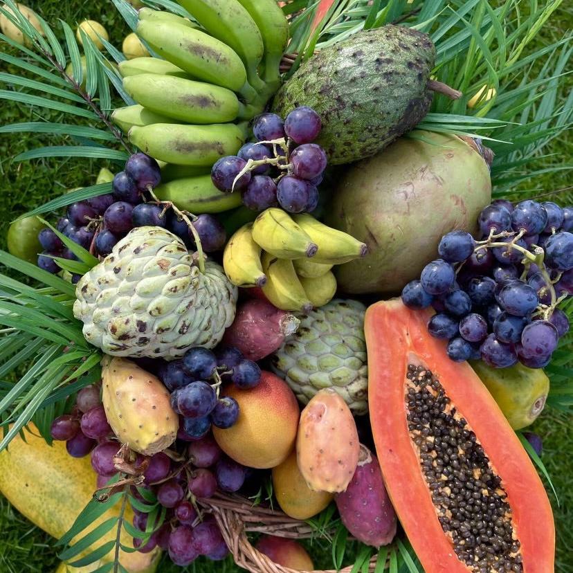 Includes custard apple, seeded grapes, burro bananas, ginger, key limes, mangos and coconut jelly. If you have any specific requests for the basket please let us know below.